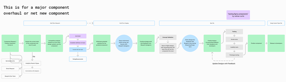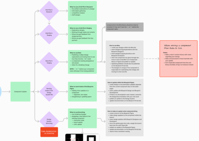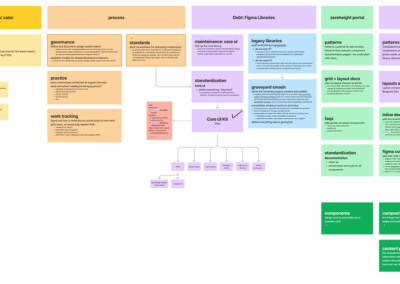 I started by auditing the existing library and conducting research by meeting with our primary users designers and developers to fully understand their pain points. The current state presented many issues – the design system was fragmented, undocumented, and difficult to scale, resulting in inconsistent user experiences, inefficient collaboration between design and engineering, and costly delays in product delivery.
